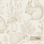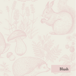 Woodland animal peel and stick removable wallpaper is a perfect nursery wallpaper made from premium woven texture wall fabric with an adhesive backing so your high quality peel and stick wallpaper for walls can be applied (and removed) with ease. This woodland wall paper features squirrels, bunnies, hedgehogs and mushrooms amongst a forest setting.