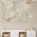 Our voyager world map wall decal is an easy and fun way to infuse a pop of educational exploration to any kids room, playroom or space. Complete with landmarks and animals on each continent, your wanderlust-dipped wall sticker will be sure to inspire the next generation of adventurers.