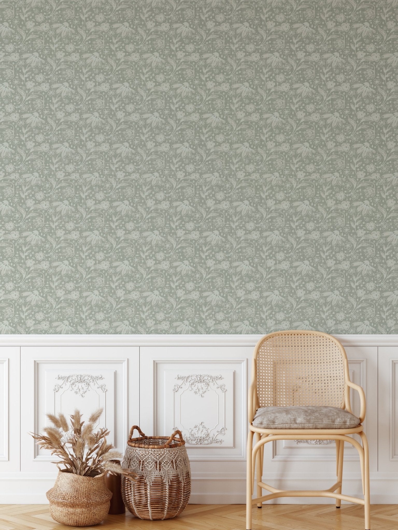 Rocky Mountain Decal’s removable peel and stick wallpapers are made from premium woven texture wall fabric with an adhesive backing so your green floral removable wallpaper for walls can be applied (and removed) with ease.