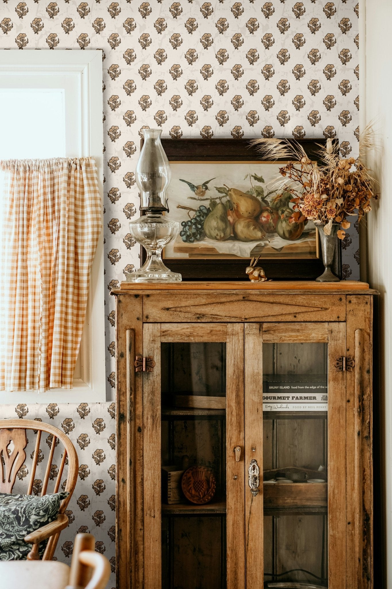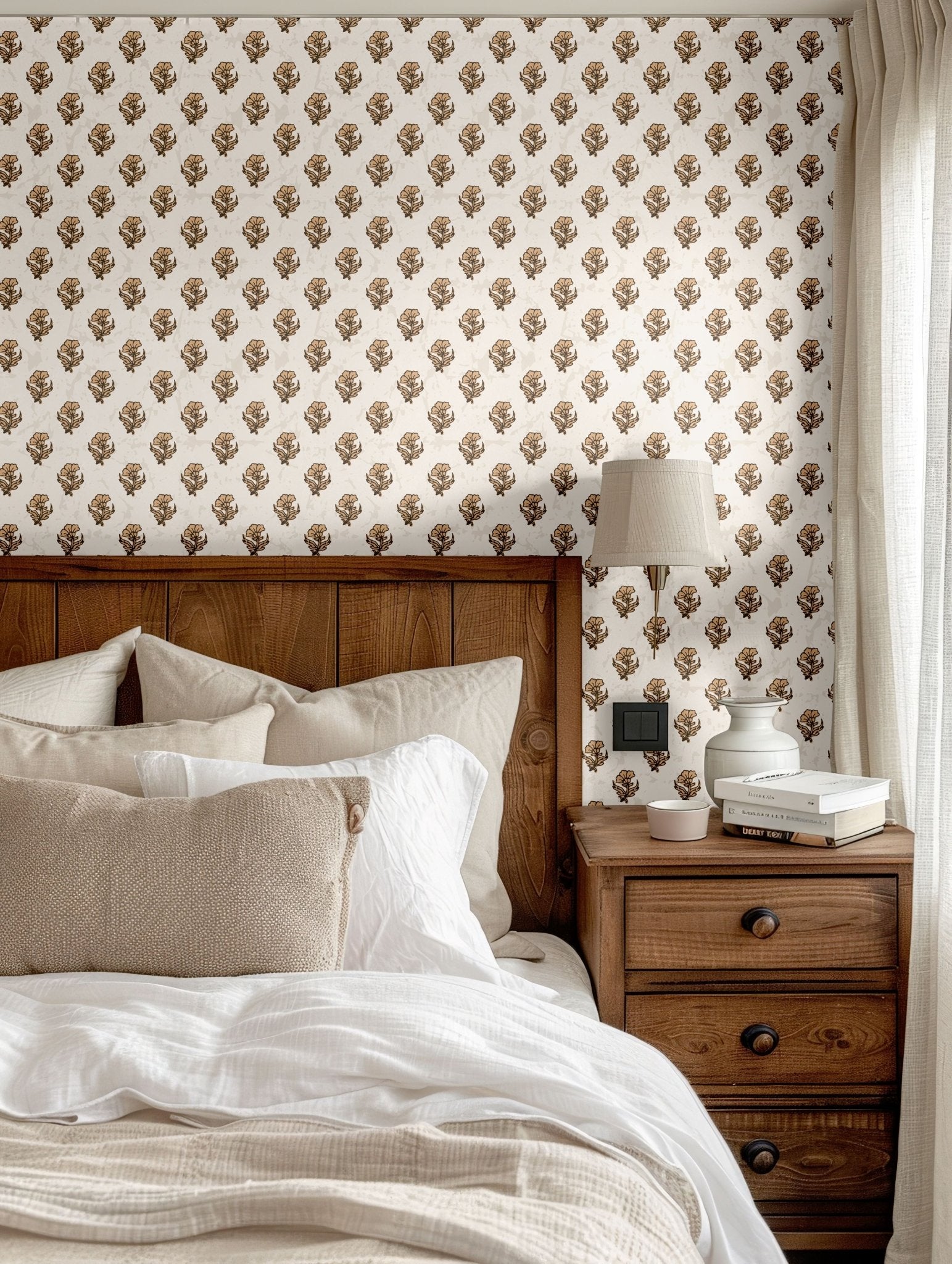Our Regencycore wallpaper, inspired by timeless elegance and floral motifs is perfect for bedrooms, nurseries, or living rooms. This vintage style wallpaper brings a touch of sophistication to any room. Available in peel-and-stick or traditional options, it's eco-friendly, easy to apply, and renter-friendly. Handcrafted in North America using VOC-free materials.