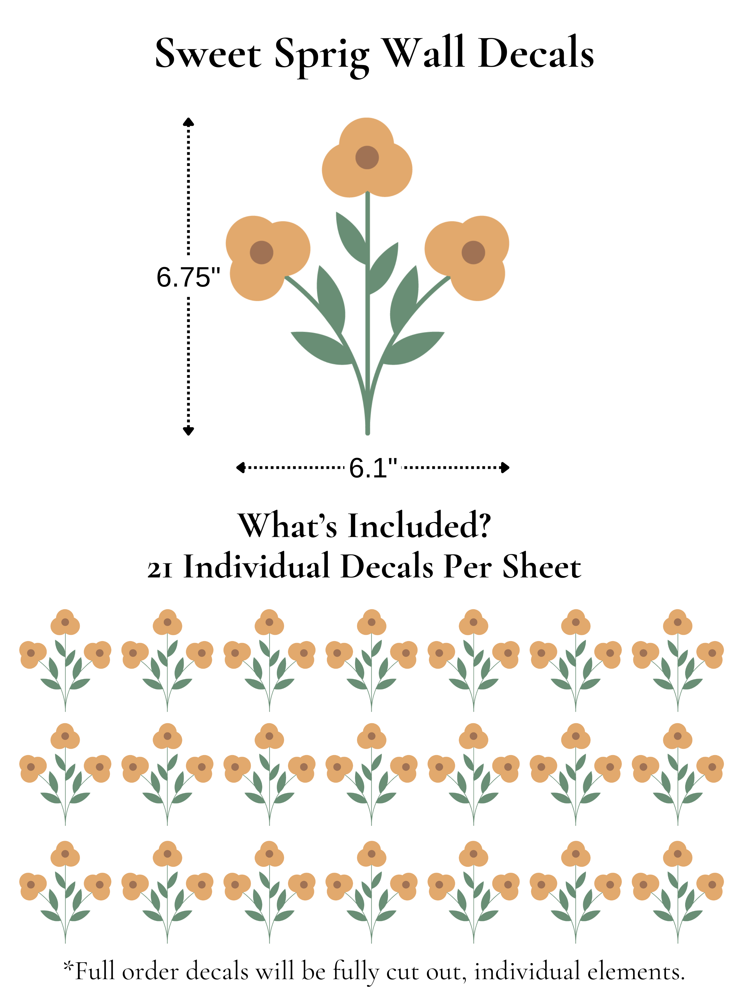 Full Sheet: A sheet of our Sweet Sprig Decals includes 21 Flowers that measure 6.1" W and 6.75" H.